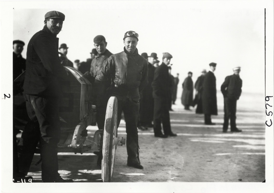 Favorite this☆ Crew with racecar, 1905 Ormond-Daytona races Description: View of three men, possibly driver and crew, standing next to car on beach during the 1905 Ormond-Daytona races in Florida. Spectators in background. Handwritten on back: "Races and racing--Ormond-Daytona, 1905." Details Resource ID: na014743 Subject: Automobiles, Racing--Florida Pit crews--Florida Automobile racing drivers--Florida Automobile racing--Florida Photographic prints Date Issued: 1905 Format: 1 photographic print ; 5 x 7 in. Member of: National Automotive History Collection Lazarnick Collection Filing Location: Races and racing--Ormond-Daytona races, 1905 #8 Negative Number: Negative #C579 Rights: Physical rights are retained by DPL. Copyright is retained in accordance with U.S. copyright laws.