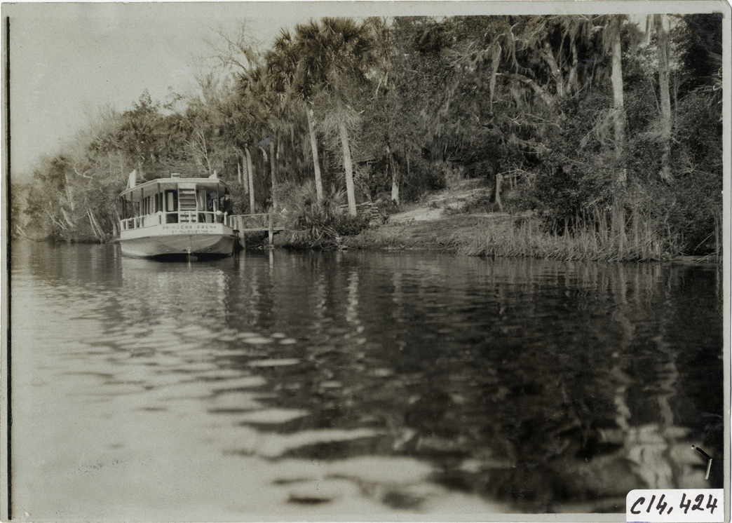"Princess Issena" docked at landing on Tomoka River, 1905 Ormond-Daytona races