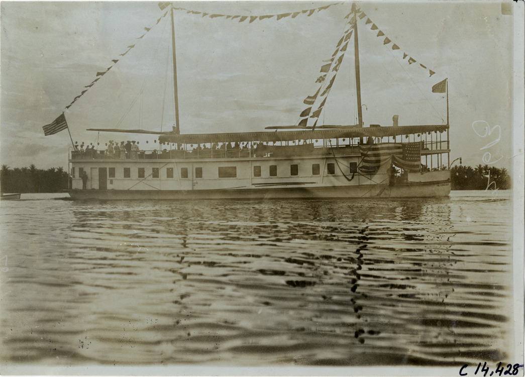 Passengers on houseboat "The Everglades", 1905 Palm Beach boat races