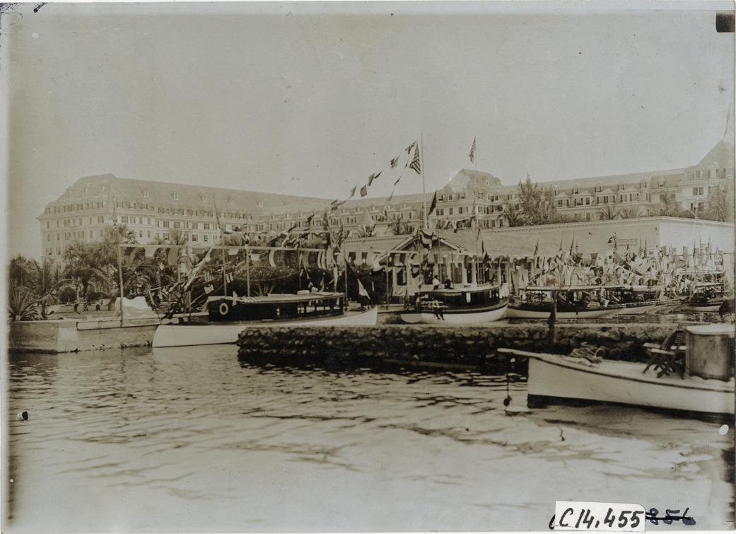 Boats docked in front of Hotel Royal Poinciana, 1905 Palm Beach boat races