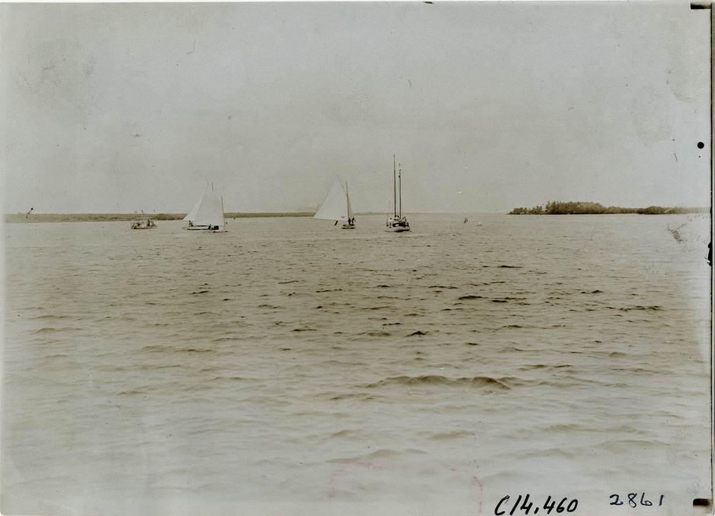 Sailboats in the E.M. O'Neill Cup race, 1905 Palm Beach boat races