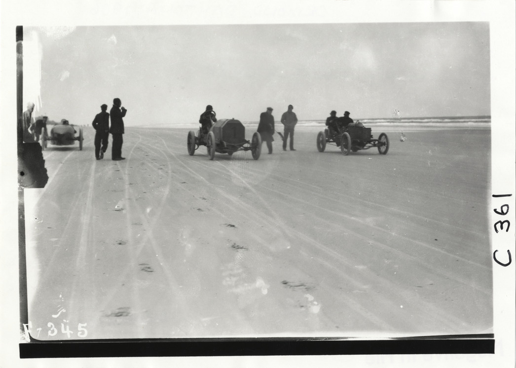 Fiat and Darracq racecars at starting line, 1906 Ormond-Daytona races