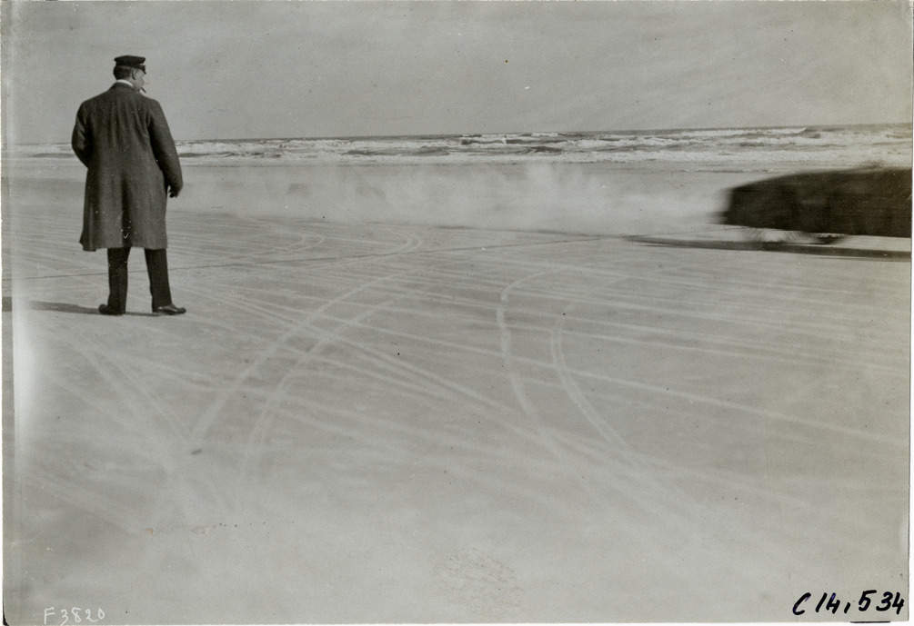 Official watching racecar, 1906 Ormond-Daytona races