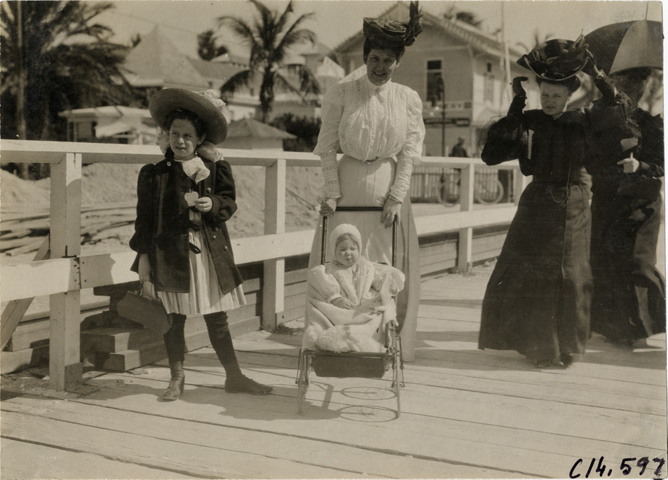 Woman pushing child in stroller, 1906 Ormond-Daytona races