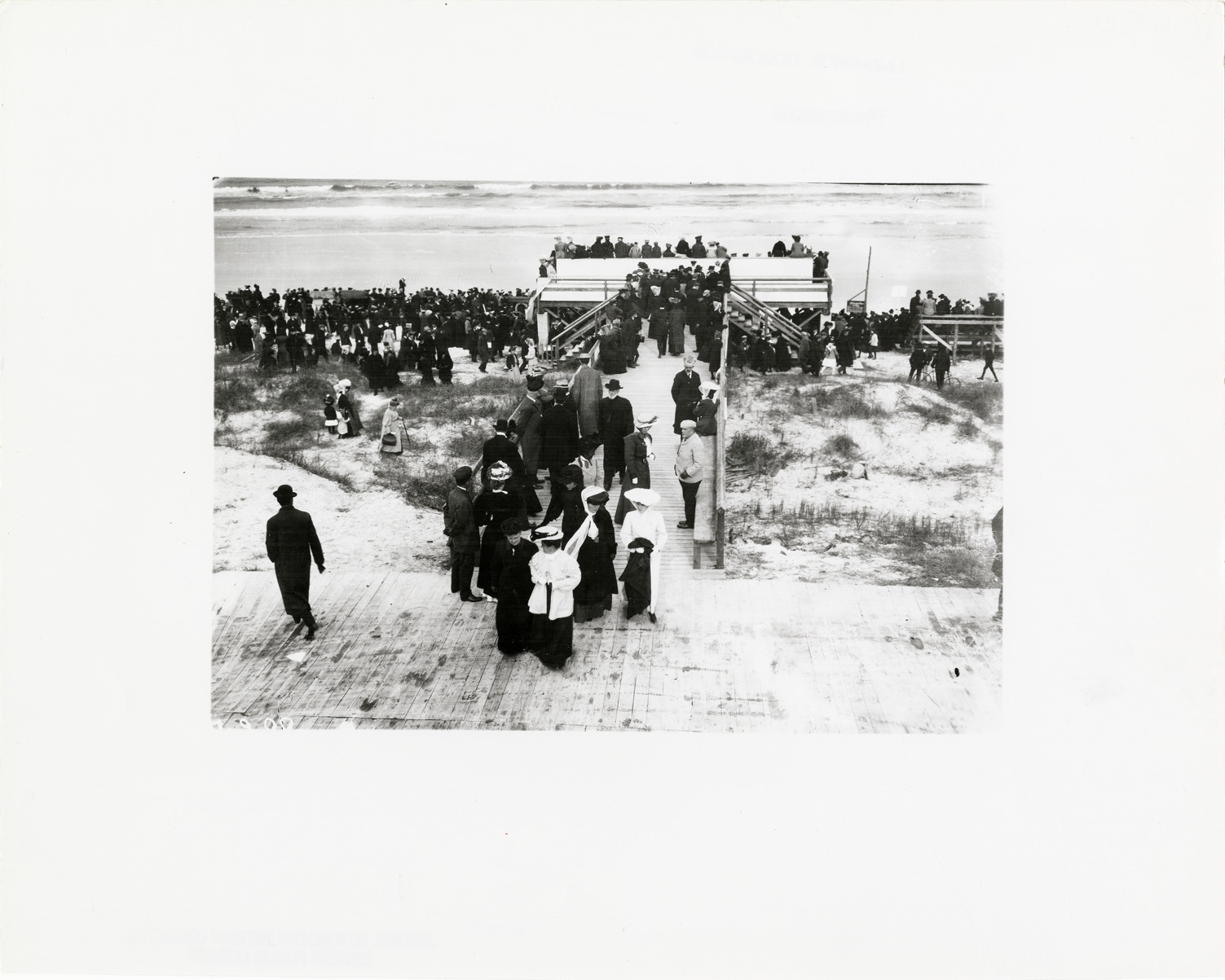 Favorite this☆ Spectators, 1906 Ormond-Daytona races Description: View of spectators on beach and wooden walkway leading to grandstand during the 1906 Ormond-Daytona races in Florida. Handwritten on back: "Races and racing--Ormond-Daytona, 1906." Details Resource ID: na014962 Subject: Automobile racing fans--Florida Automobile racing--Florida Photographic prints Date Issued: 1906 Format: 1 photographic print ; 8 x 10 in. Member of: National Automotive History Collection Lazarnick Collection Filing Location: Races and racing--Ormond-Daytona races, 1906 #5 Rights: Physical rights are retained by DPL. Copyright is retained in accordance with U.S. copyright laws.