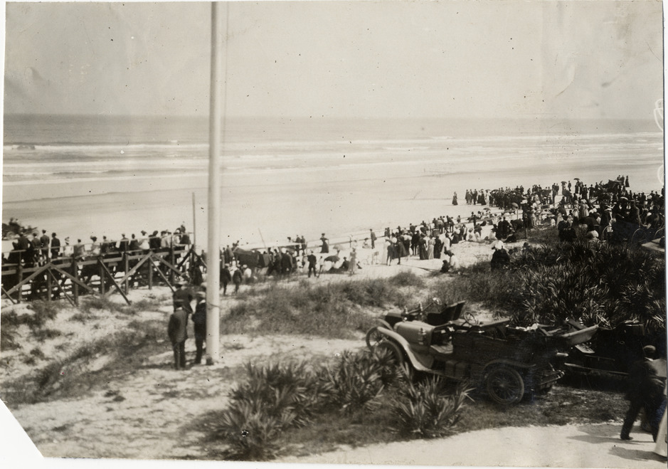 Favorite this☆ Spectators, 1908 Ormond-Daytona races Description: View of spectators on beach during the 1908 Ormond-Daytona races in Florida. Car in foreground. Handwritten on back: "View of races [undecipherable]. Races and racing--Ormond-Daytona, 1908." Details Resource ID: na015099 Subject: Automobile racing fans--Florida Automobiles--Florida Automobile racing--Florida Photographic prints Date Issued: 1908 Format: 1 photographic print ; 4.5 x 6.25 in. Member of: National Automotive History Collection Lazarnick Collection Filing Location: Races and racing--Ormond-Daytona races, 1908 #6 Rights: Physical rights are retained by DPL. Copyright is retained in accordance with U.S. copyright laws.