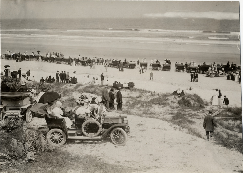 Favorite this☆ Spectators, 1908 Ormond-Daytona races Description: View of spectators on beach, some with cars, during the 1908 Ormond-Daytona races in Florida. Handwritten on back: "View first days. Races and racing--Ormond-Daytona, 1908." Details Resource ID: na015119 Subject: Automobile racing fans--Florida Automobiles--Florida Automobile racing--Florida Photographic prints Date Issued: 1908 Format: 1 photographic print ; 4.5 x 6.25 in. Member of: National Automotive History Collection Lazarnick Collection Filing Location: Races and racing--Ormond-Daytona races, 1908 #7 Rights: Physical rights are retained by DPL. Copyright is retained in accordance with U.S. copyright laws.