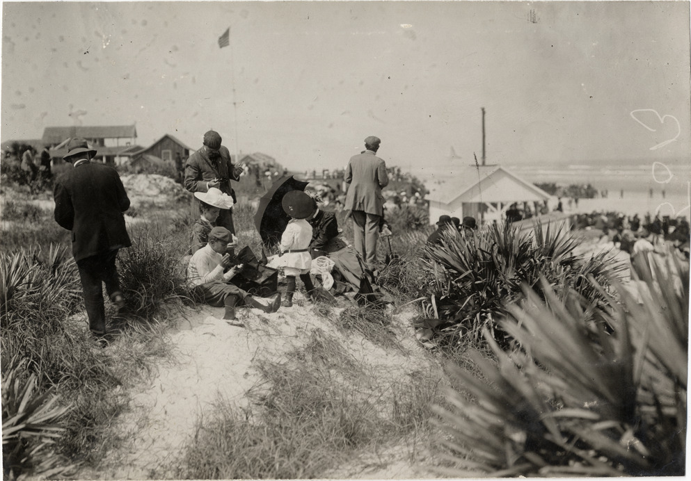 Favorite this☆ Spectators, 1908 Ormond-Daytona races Description: View of spectators on bluff overlooking beach during the 1908 Ormond-Daytona races in Florida. Handwritten on back: "Races and racing--Ormond-Daytona, 1908." Details Resource ID: na015131 Subject: Automobile racing fans--Florida Automobile racing--Florida Photographic prints Date Issued: 1908 Format: 1 photographic print ; 4.75 x 6.75 in. Member of: National Automotive History Collection Lazarnick Collection Filing Location: Races and racing--Ormond-Daytona races, 1908 #7 Rights: Physical rights are retained by DPL. Copyright is retained in accordance with U.S. copyright laws.
