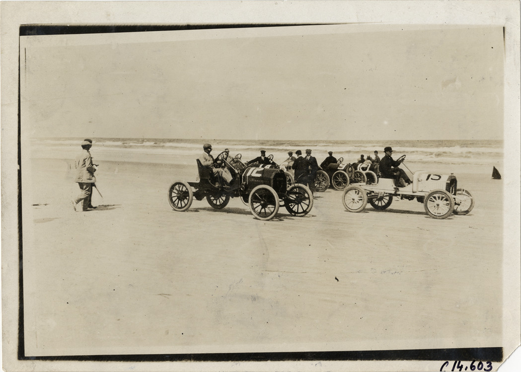 Racecars at starting line, 1910 Ormond-Daytona races