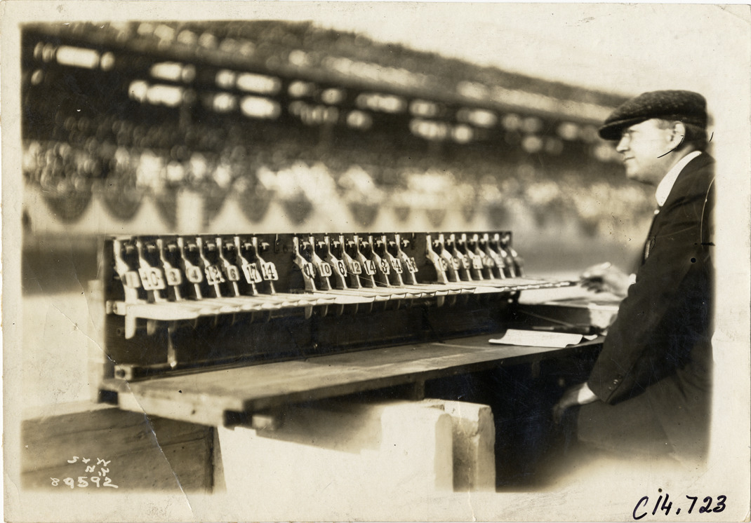 Official with timing equipment, 1915 Sheepshead Bay races