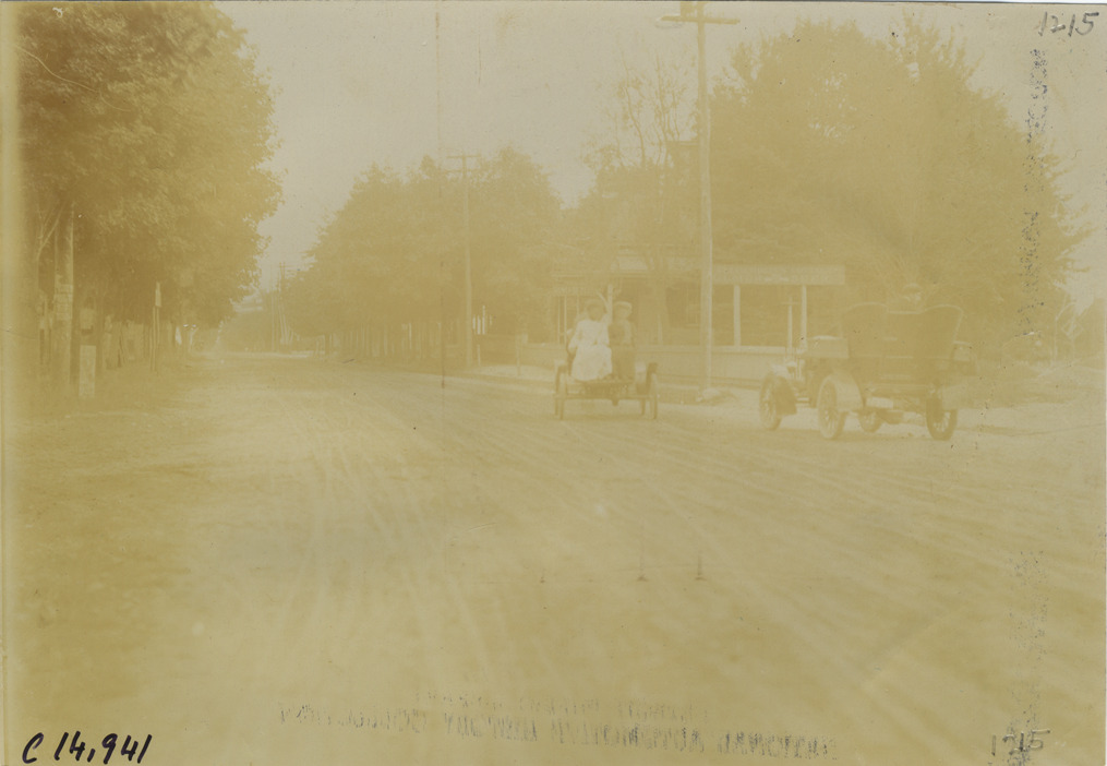 Motorists traveling on course, 1904 Vanderbilt Cup races