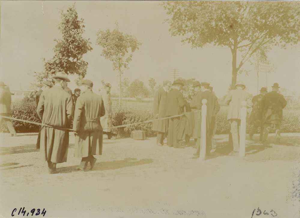 Favorite this☆ Men at 1904 Vanderbilt Cup races Description: View of group of men standing behind barrier during the 1904 Vanderbilt Cup races on Long Island, New York. Handwritten on back: "Races and racing--Vanderbilt Cup races, 1904." Details Resource ID: na015424 Subject: Men--New York (State)--Long Island Vanderbilt Cup Race (1904) Automobile racing--New York (State)--Long Island Photographic prints Date Issued: 1904 Format: 1 photographic print ; 5 x 6.75 in. Member of: National Automotive History Collection Lazarnick Collection Filing Location: Races and racing--Vanderbilt Cup Races, 1904 #9 Negative Number: Negative #C14,934 Rights: Physical rights are retained by DPL. Copyright is retained in accordance with U.S. copyright laws.