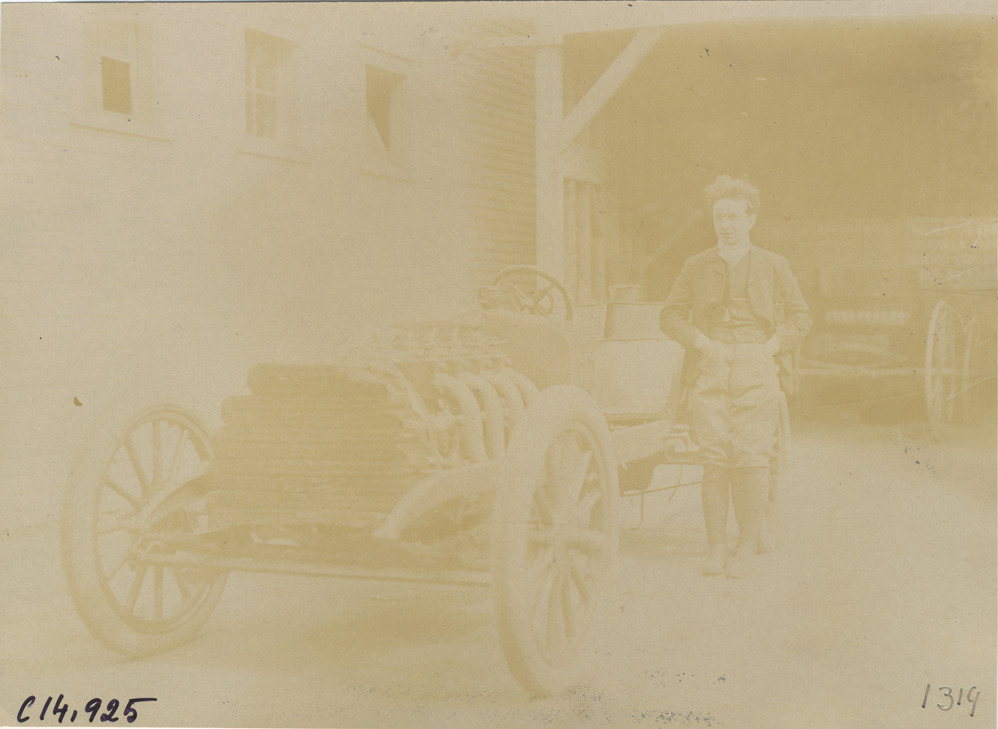 Albert Clement with Clement-Bayard racecar, 1904 Vanderbilt Cup races