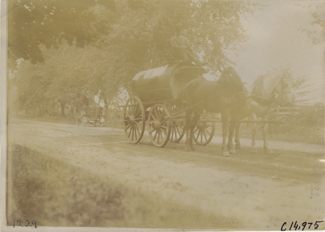 Favorite this☆ Horse-drawn water wagon, 1904 Vanderbilt Cup races Description: View of man driving horse-drawn water wagon during the 1904 Vanderbilt Cup races on Long Island, New York. Handwritten on back: "Races and racing--Vanderbilt Cup races, 1904." Details Resource ID: na015432 Subject: Horse-drawn vehicles--New York (State)--Long Island Vanderbilt Cup Race (1904) Automobile racing--New York (State)--Long Island Photographic prints Date Issued: 1904 Format: 1 photographic print ; 5 x 7 in. Member of: National Automotive History Collection Lazarnick Collection Filing Location: Races and racing--Vanderbilt Cup Races, 1904 #10 Negative Number: Negative #C14,975 Rights: Physical rights are retained by DPL. Copyright is retained in accordance with U.S. copyright laws.