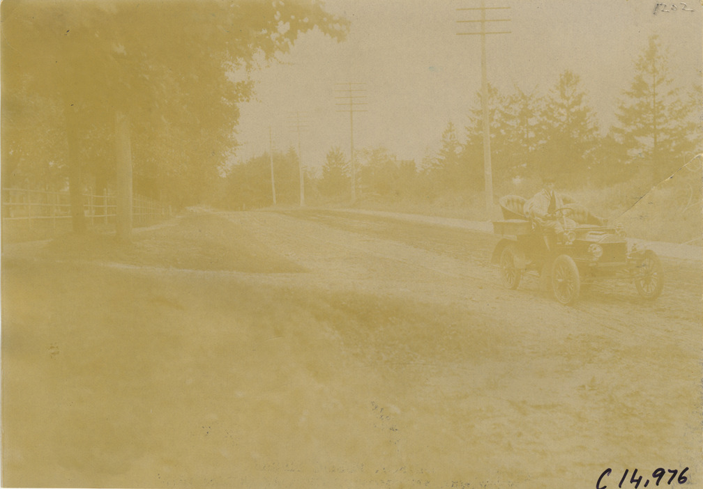 Motorist traveling on course, 1904 Vanderbilt Cup races