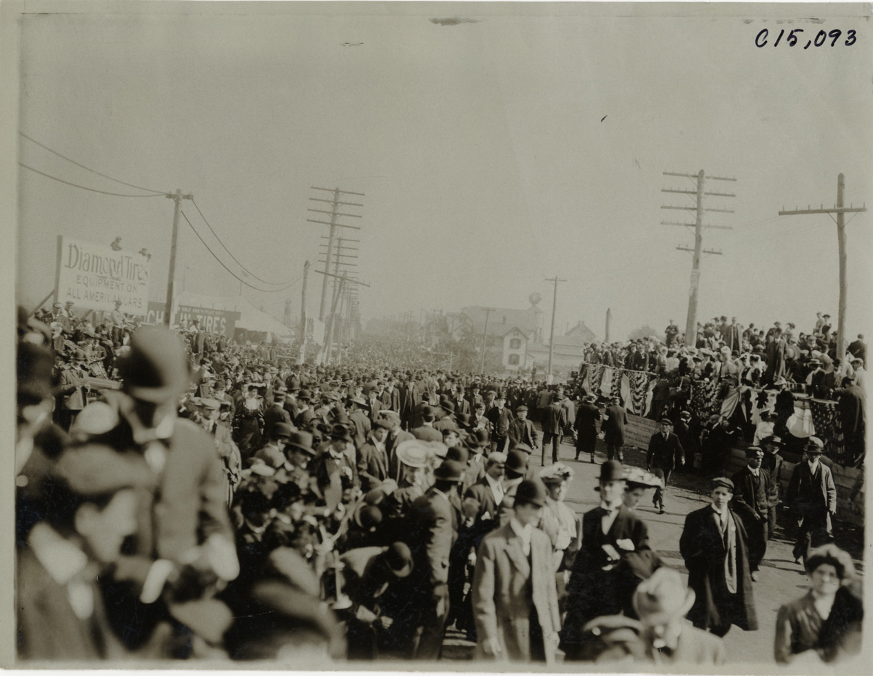 Favorite this☆ Spectators, 1905 Vanderbilt Cup races Description: Close-up view of spectators during the 1905 Vanderbilt Cup races on Long Island, New York. Grandstand on right; Diamond tires sign on left. Handwritten on back: "Races and racing--Vanderbilt Cup races, 1905." Details Resource ID: na015529 Subject: Automobile racing fans--New York (State)--Long Island Vanderbilt Cup Race (1905) Automobile racing--New York (State)--Long Island Photographic prints Date Issued: 1905 Format: 1 photographic print ; 6.5 x 8.5 in. Member of: National Automotive History Collection Lazarnick Collection Filing Location: Races and racing--Vanderbilt Cup Races, 1905 #1 Negative Number: Negative #C15,093 Rights: Physical rights are retained by DPL. Copyright is retained in accordance with U.S. copyright laws.