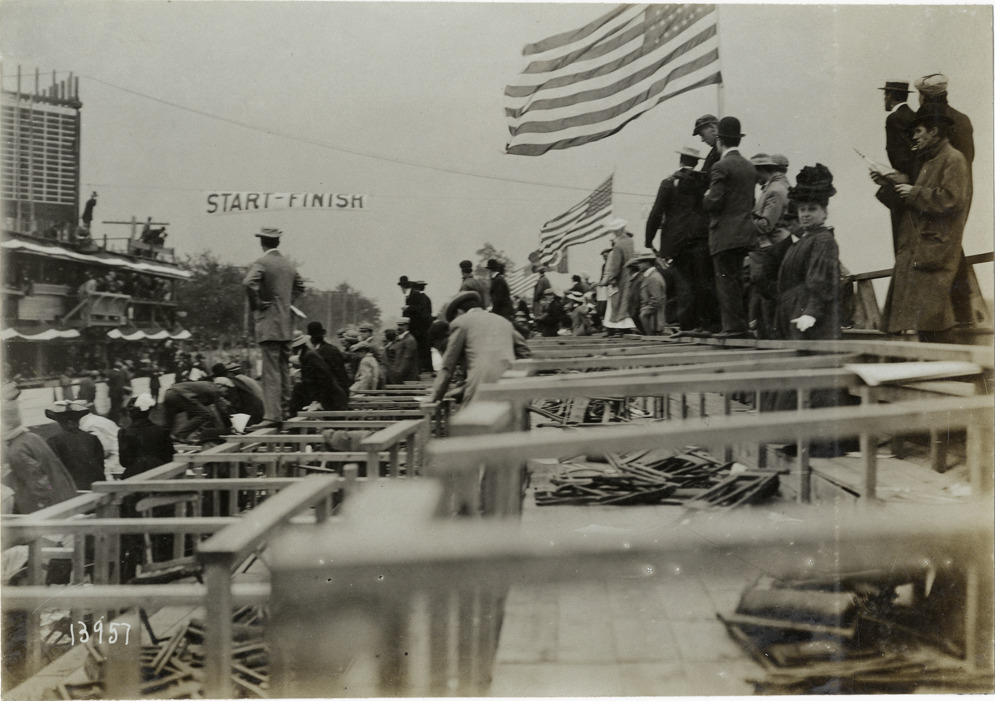 Spectators in grandstand, 1906 Vanderbilt Cup races