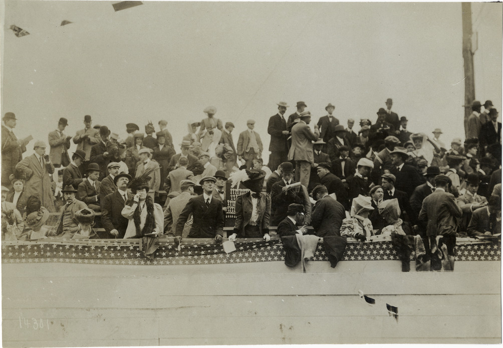 Favorite this☆ Spectators in grandstand, 1906 Vanderbilt Cup races Description: View of spectators in grandstand during the 1906 Vanderbilt Cup races on Long Island, New York. Handwritten on back: "Races and racing--Vanderbilt Cup races, 1906." Details Resource ID: na015786 Subject: Automobile racing fans--New York (State)--Long Island Grandstands--New York (State)--Long Island Vanderbilt Cup Race (1906) Automobile racing--New York (State)--Long Island Photographic prints Date Issued: 1906 Format: 1 photographic print ; 4.5 x 6.75 in. Member of: National Automotive History Collection Lazarnick Collection Filing Location: Races and racing--Vanderbilt Cup Races, 1906 #5 Rights: Physical rights are retained by DPL. Copyright is retained in accordance with U.S. copyright laws.