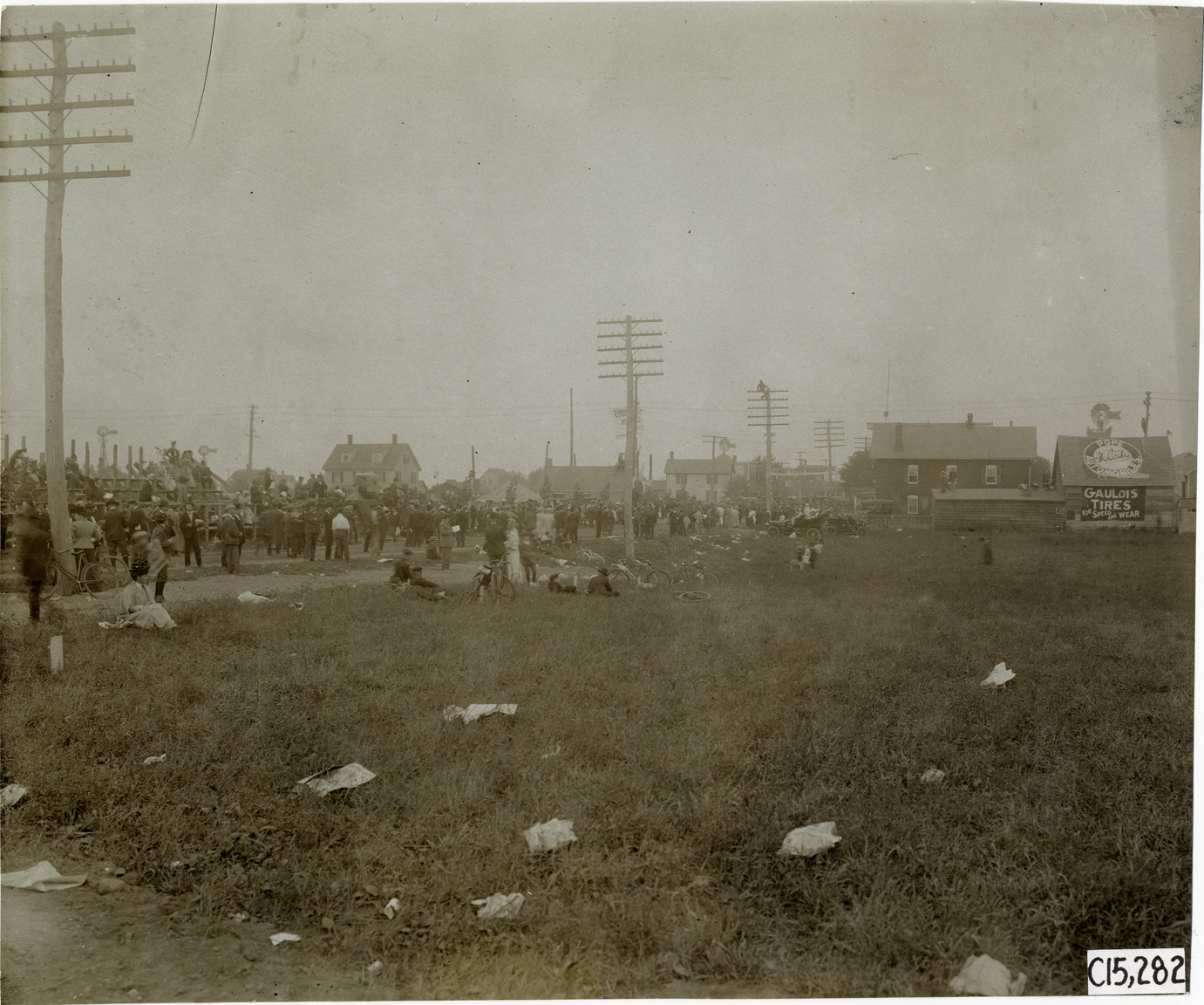 Favorite this☆ Spectators on roadside, 1906 Vanderbilt Cup races Description: Distant view of spectators on roadside during the 1906 Vanderbilt Cup races on Long Island, New York. Houses in background. Handwritten on back: "Races and racing--Vanderbilt Cup races, 1906." Details Resource ID: na015883 Subject: Automobile racing fans--New York (State)--Long Island Vanderbilt Cup Race (1906) Automobile racing--New York (State)--Long Island Photographic prints Date Issued: 1906 Format: 1 photographic print ; 7.75 x 9.25 in. Member of: National Automotive History Collection Lazarnick Collection Filing Location: Races and racing--Vanderbilt Cup Races, 1906 #9 Negative Number: Negative #C15,282 Rights: Physical rights are retained by DPL. Copyright is retained in accordance with U.S. copyright laws.