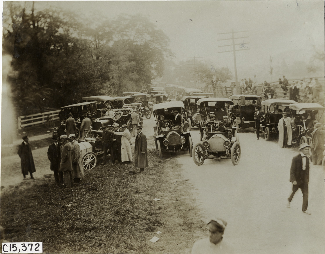 Spectators with automobiles, 1906 Vanderbilt Cup races