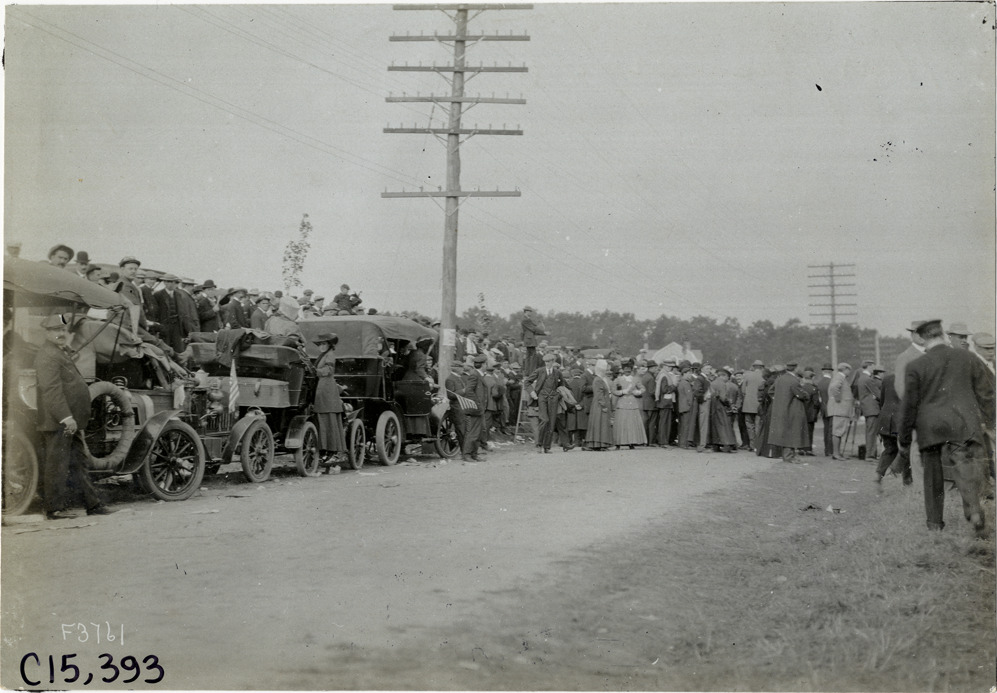 Spectators near hairpin turn, 1906 Vanderbilt Cup races