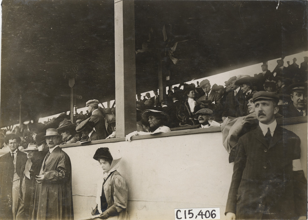 Spectators in grandstand, 1908 Vanderbilt Cup races