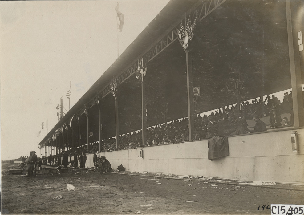 Spectators in grandstand, 1908 Vanderbilt Cup races