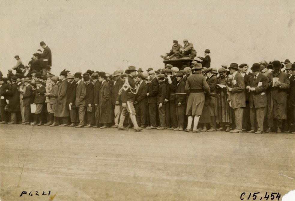 Soldiers and spectators on roadside, 1908 Vanderbilt Cup races