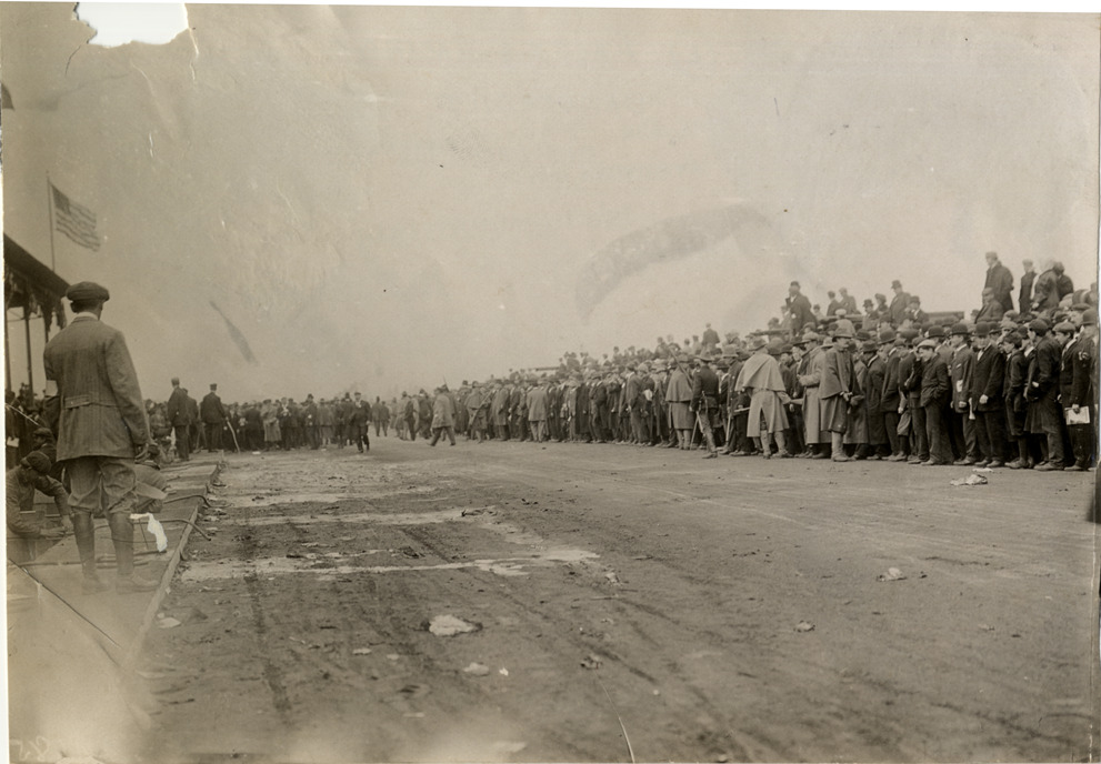 Spectators near finish line, 1908 Vanderbilt Cup races