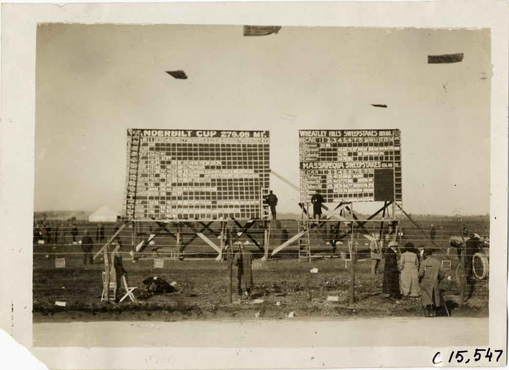 Favorite this☆ Scoreboards, 1909 Vanderbilt Cup races Description: View of scoreboards during the 1909 Vanderbilt Cup races on Long Island, New York. Stamped on back: "Photo by Spooner & Wells, Inc. 1931 Broadway, N.Y." Handwritten on back: "Races and racing--Vanderbilt Cup races, 1909." Details Resource ID: na016377 Creator: Spooner & Wells Subject: Signs and signboards--New York (State)--Long Island Vanderbilt Cup Race (1909) Automobile racing--New York (State)--Long Island Photographers--New York (State)--New York Photographic prints Date Issued: 1909 Format: 1 photographic print ; 5 x 7 in. Member of: National Automotive History Collection Lazarnick Collection Filing Location: Races and racing--Vanderbilt Cup Races, 1909 #2 Negative Number: Negative #C15,547 Rights: Physical rights are retained by DPL. Copyright is retained in accordance with U.S. copyright laws.