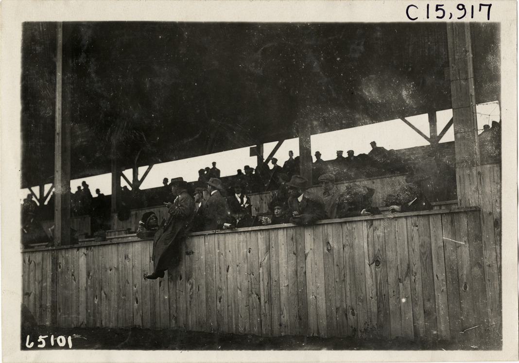 Spectators in grandstand, 1910 Vanderbilt Cup races