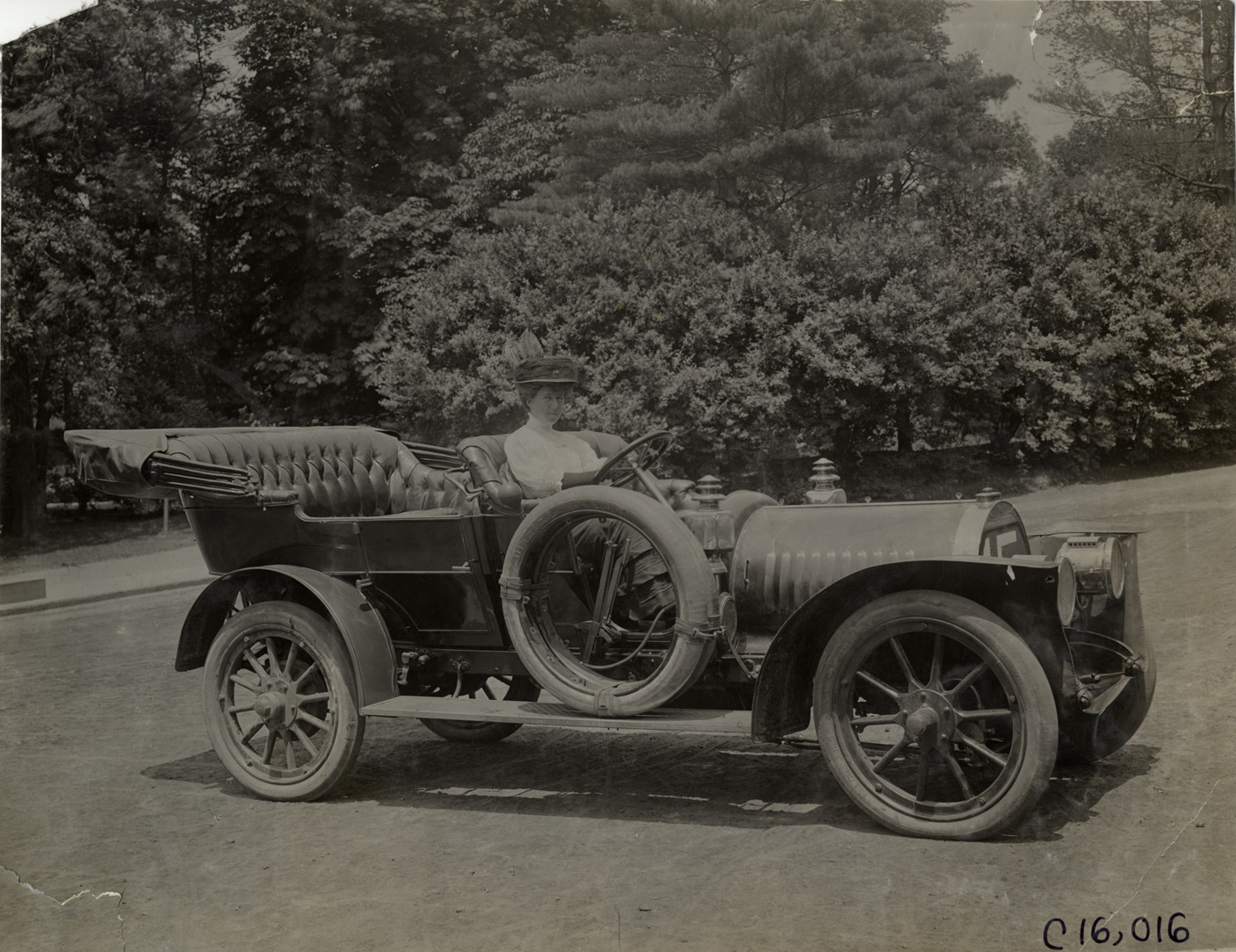 Favorite this☆ Joan Cuneo in 1908 Rainier automobile Description: View of Joan Cuneo posing in 1908 Rainier car. Handwritten on back: "Joan Cuneo. Rainier, 1908." Details Resource ID: na016966 Subject: Cuneo, Joan Newton, 1876-1934 Automobiles Rainier Motor Car Company Women automobile drivers Photographic prints Date Issued: Unknown year Format: 1 photographic print ; 7.5 x 9.5 in. Member of: National Automotive History Collection Lazarnick Collection Filing Location: Rainier Negative Number: Negative #C16,016 Rights: Physical rights are retained by DPL. Copyright is retained in accordance with U.S. copyright laws.