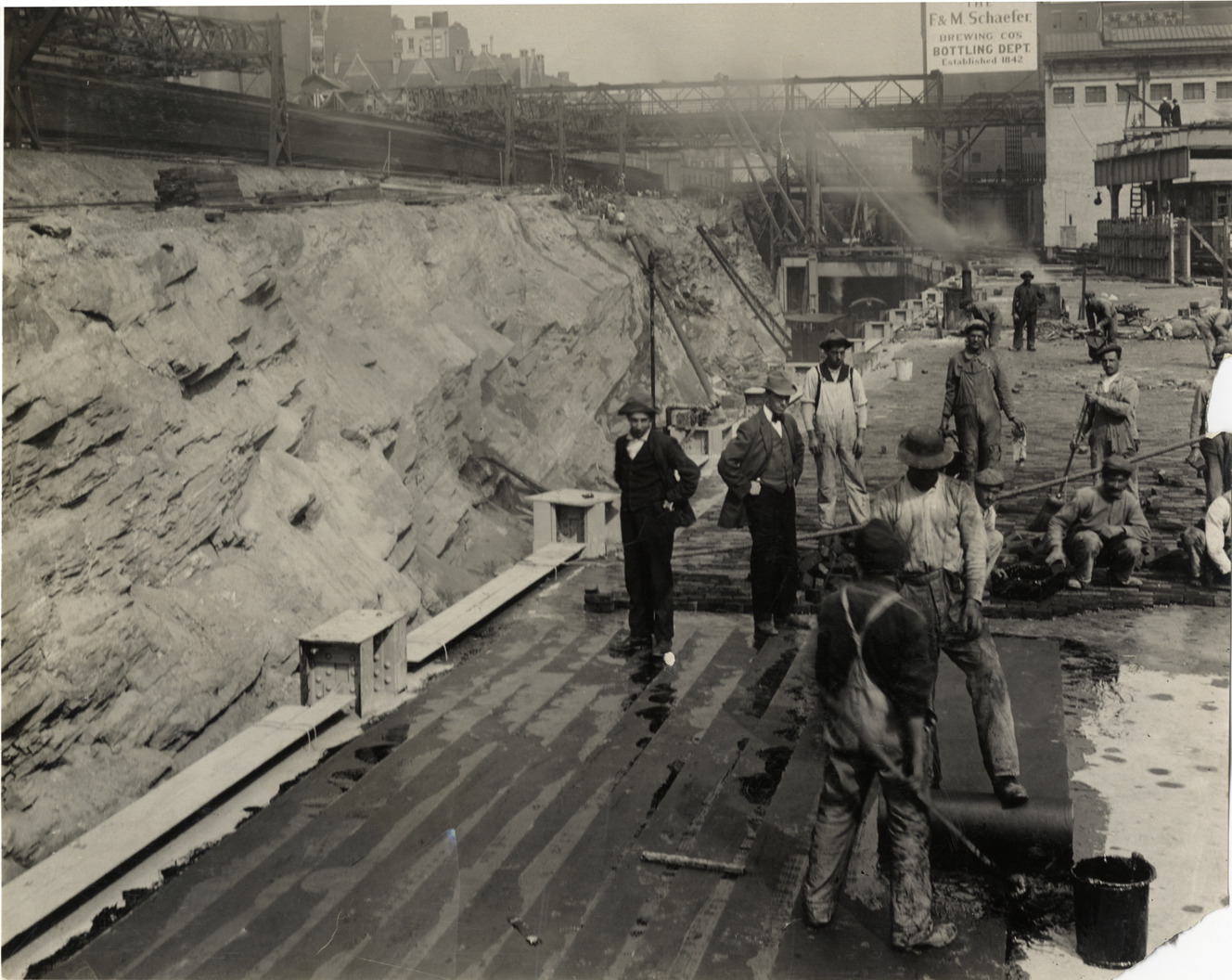 Favorite this☆ Men constructing brick road Description: View of men constructing brick road in front of the E. & M. Schaefer Brewing Company, Bottling Department building. Handwritten on back: "Road construction." Details Resource ID: na017019 Subject: Brick roads--Design and construction Road construction workers Photographic prints Date Issued: Unknown year Format: 1 photographic print ; 7 x 9 in. Member of: National Automotive History Collection Lazarnick Collection Filing Location: Road construction Rights: Physical rights are retained by DPL. Copyright is retained in accordance with U.S. copyright laws.