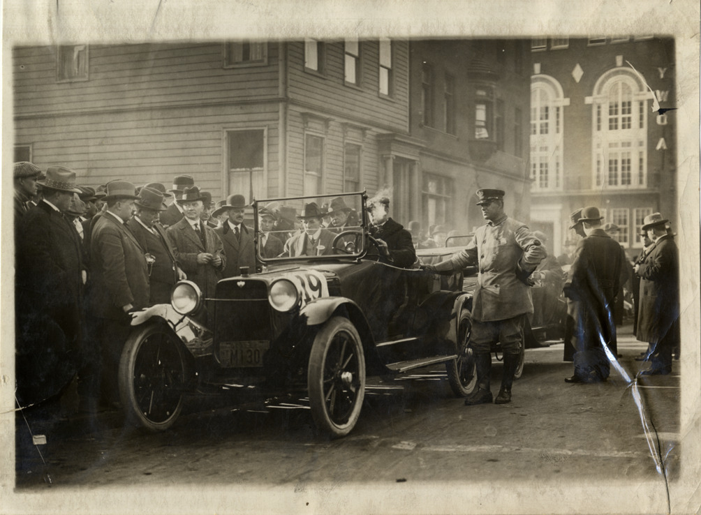 Favorite this☆ Motorists in 1915 Saxon automobile Description: View of motorists in 1915 Saxon car. Uniformed man stands next to car; onlookers watch from sidewalk. Y.W.C.A. building in background. Handwritten on back: "Saxon, 1915." Details Resource ID: na017126 Subject: Automobiles Saxon Motor Car Company Photographic prints Date Issued: Unknown year Format: 1 photographic print ; 5 x 6.75 in. Member of: National Automotive History Collection Lazarnick Collection Filing Location: Saxon Rights: Physical rights are retained by DPL. Copyright is retained in accordance with U.S. copyright laws.