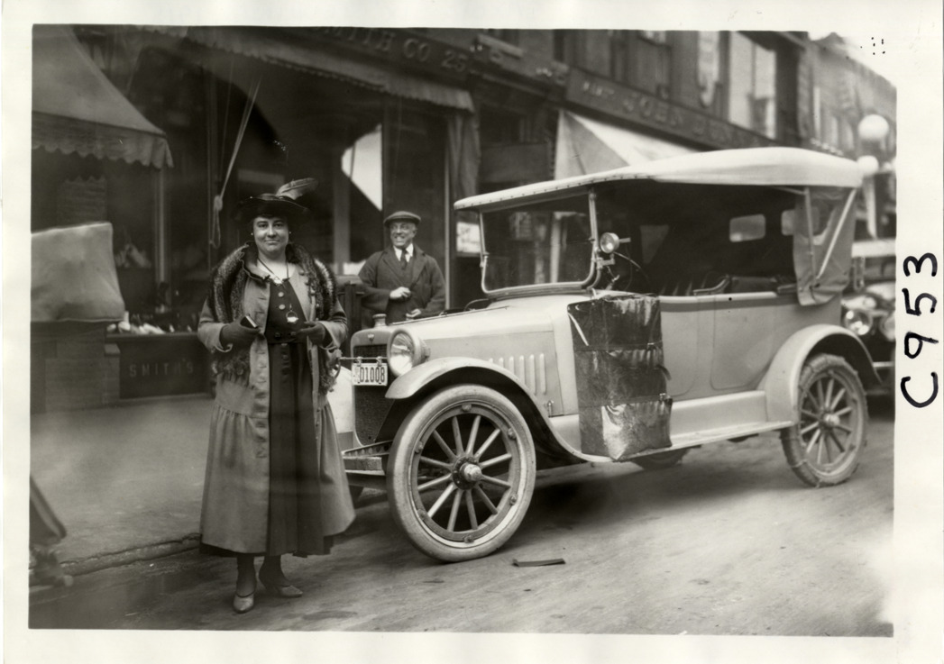 Favorite this☆ Woman posing with 1915 Saxon automobile Description: View of woman posing with 1915 Saxon "Six" touring car. Man stands on sidewalk; commercial buildings in background. Handwritten on back: "Saxon, 1915." Details Resource ID: na017127 Subject: Automobiles Saxon Motor Car Company Woman Photographic prints Date Issued: Unknown year Format: 1 photographic print ; 5 x 7 in. Member of: National Automotive History Collection Lazarnick Collection Filing Location: Saxon Negative Number: Negative #C953 F2 Rights: Physical rights are retained by DPL. Copyright is retained in accordance with U.S. copyright laws.