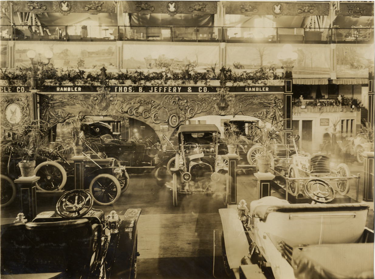 Rambler automobiles in Thomas B. Jeffery & Company exhibit, 1909 Chicago Auto Show