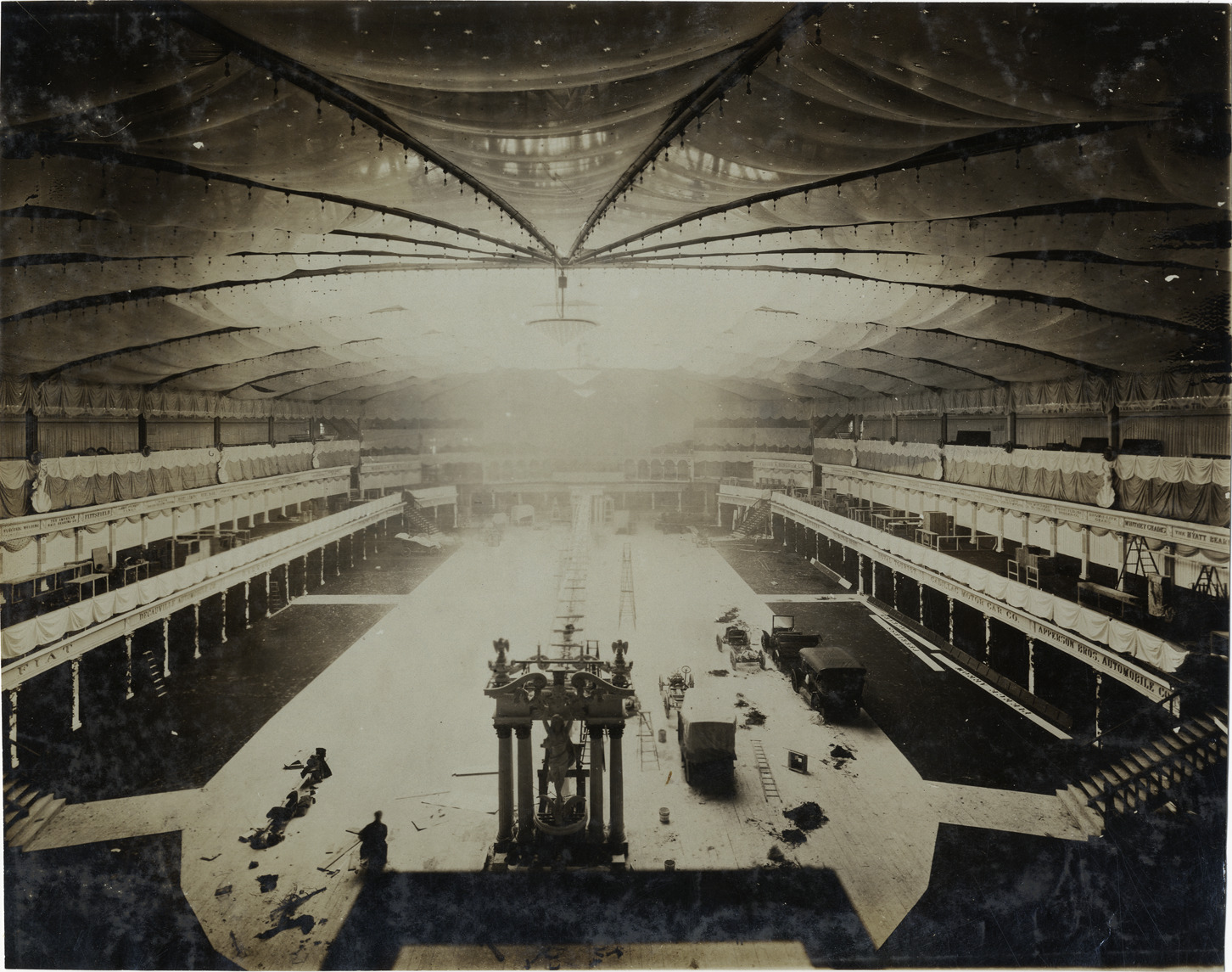 Installation of exhibit area, 1906 New York Auto Show