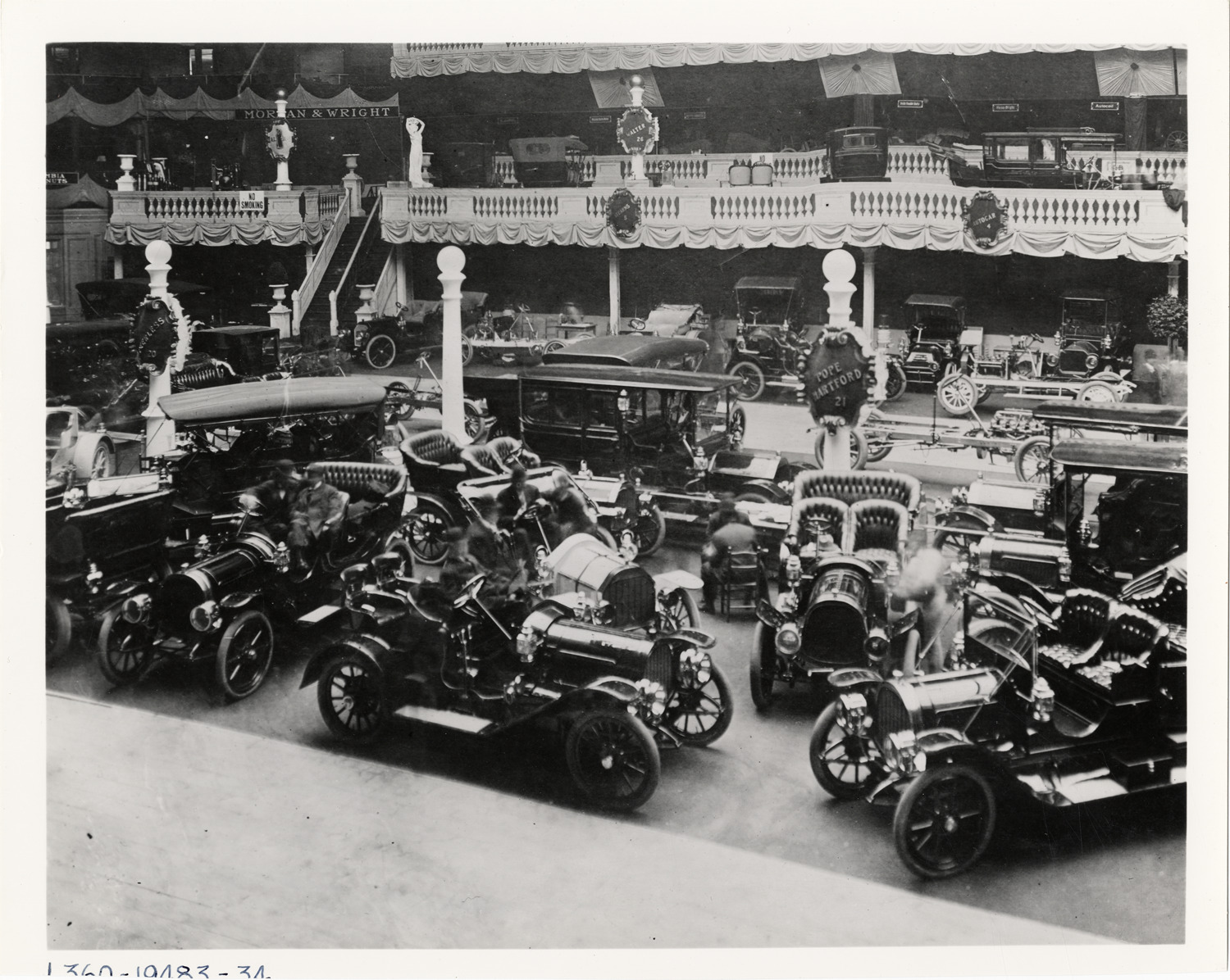 Favorite this☆ Pope-Hartford automobiles on exhibit, 1908 New York Auto Show Description: View of Pope-Hartford cars on exhibit during the 1908 New York Auto Show held at Madison Square Garden. Handwritten on back: "Shows--New York, 1908." Details Resource ID: na017611 Subject: Automobiles--New York (State)--New York Pope Manufacturing Company Trade shows--New York (State)--New York Photographic prints Date Issued: 1908 Format: 1 photographic print ; 8 x 10 in. Member of: National Automotive History Collection Lazarnick Collection Filing Location: Shows--New York, 1903-1905, 1907-1908 Rights: Physical rights are retained by DPL. Copyright is retained in accordance with U.S. copyright laws.