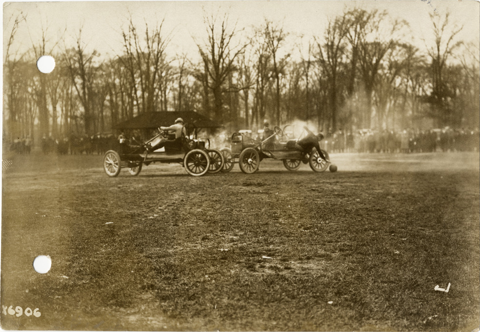 Favorite this☆ Auto polo game, Clark Park Description: View of two cars participating in auto polo game at Clark Park in Detroit, Michigan. Spectators in background. Handwritten on back: "Autopolo game. Sporting events--Autopolo, 1912." Details Resource ID: na017896 Subject: Automobiles--Michigan--Detroit Polo--Michigan--Detroit Photographic prints Date Issued: 1912 Format: 1 photographic print ; 4.5 x 6.5 in. Member of: National Automotive History Collection Lazarnick Collection Filing Location: Sporting events--Autopolo Rights: Physical rights are retained by DPL. Copyright is retained in accordance with U.S. copyright laws.