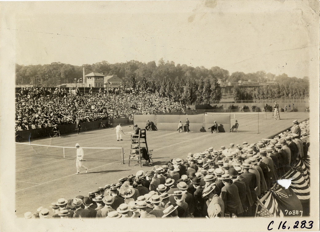 Favorite this☆ Tennis match Description: View of tennis match. Spectators in grandstands; official sits on side of court. Stamped on back: "Spooner & Wells, Inc., photographers, telephones 3472-3473 Columbus, 1931 Broadway, New York." Handwritten on back: "Sporting events--Tennis, 1911." Details Resource ID: na017973 Creator: Spooner & Wells Subject: Tennis players Tennis courts Tennis--Tournaments Sports spectators Photographers--New York (State)--New York Photographic prints Date Issued: 1911 Format: 1 photographic print ; 5 x 7 in. Member of: National Automotive History Collection Lazarnick Collection Filing Location: Sporting events--Tennis, 1911 Negative Number: Negative #C16,283 Rights: Physical rights are retained by DPL. Copyright is retained in accordance with U.S. copyright laws.