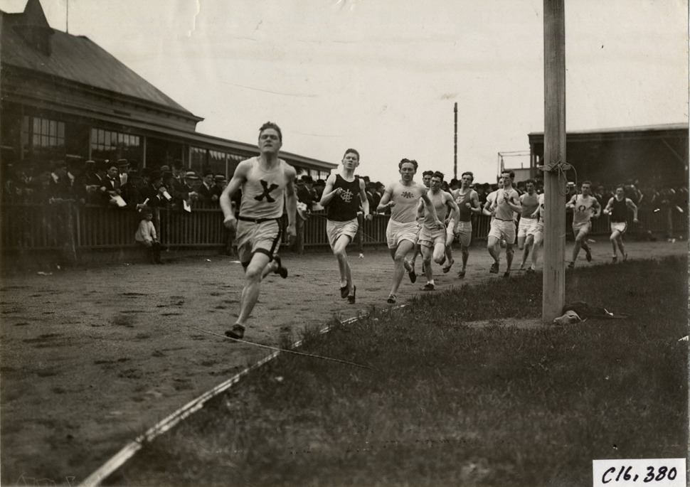 Favorite this☆ Runners competing in race Description: View of runners competing in race at track meet. Spectators watch from sidelines. Handwritten on back: "Sporting events--Track and field, 1909." Details Resource ID: na018039 Subject: Runners (Sports) Running races Photographic prints Date Issued: 1909 Format: 1 photographic print ; 4.75 x 6.5 in. Member of: National Automotive History Collection Lazarnick Collection Filing Location: Sporting events--Track and field, 1909 #3 Negative Number: Negative #C16,380 Rights: Physical rights are retained by DPL. Copyright is retained in accordance with U.S. copyright laws.