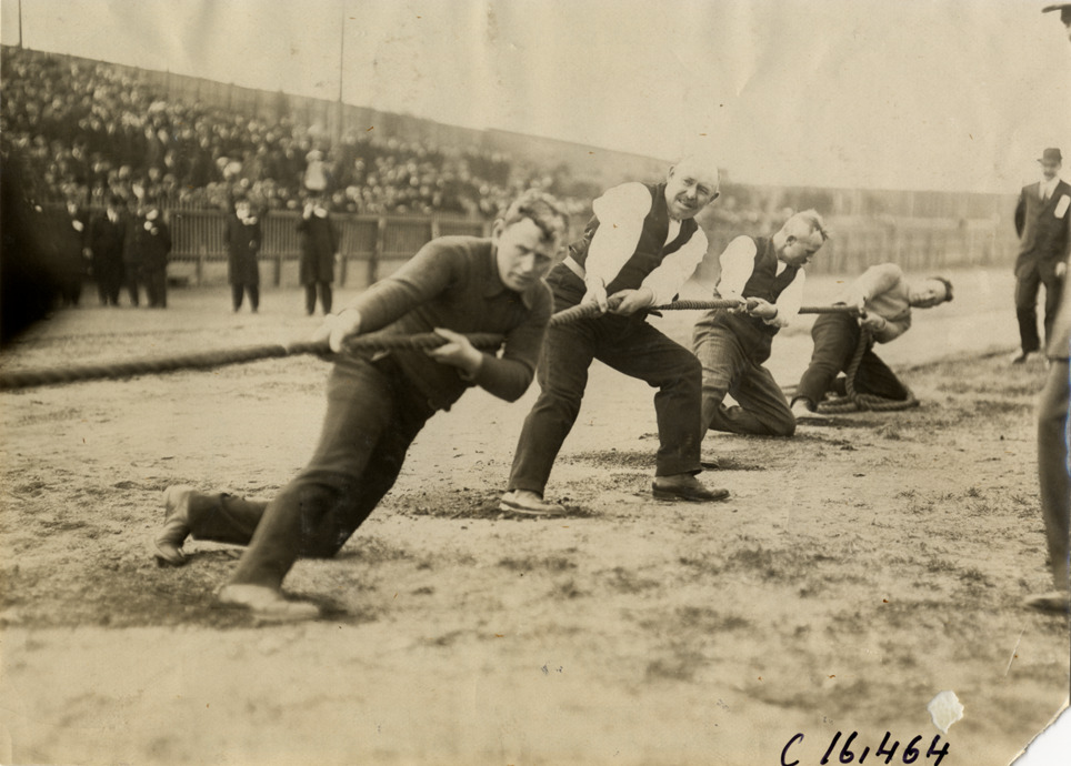 Favorite this☆ Men competing in tug of war contest Description: View of men pulling rope in tug of war competition. Stamped on back: "Spooner & Wells, Inc., photographers, telephones 3472-3473 Columbus, 1931 Broadway, New York." Handwritten on back: "Sporting events--Track and field, 1909." Details Resource ID: na018123 Creator: Spooner & Wells Subject: Tug of war (Game) Rope Photographers--New York (State)--New York Photographic prints Date Issued: 1909 Format: 1 photographic print ; 4.75 x 6.5 in. Member of: National Automotive History Collection Lazarnick Collection Filing Location: Sporting events--Track and field, 1909 #6 Negative Number: Negative #C16,464 Rights: Physical rights are retained by DPL. Copyright is retained in accordance with U.S. copyright laws.