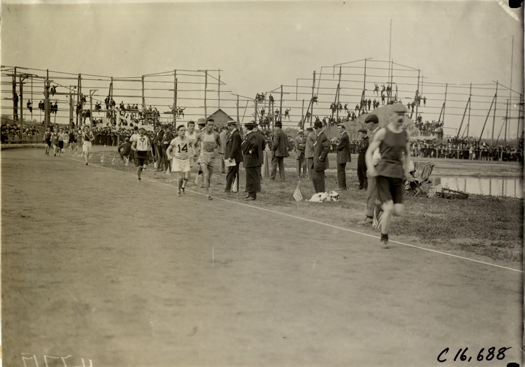 Favorite this☆ Runners competing in race Description: View of runners competing in race at track meet. Officials and spectators watch from sidelines. Handwritten on back: "Sporting events--Track and field, 1909." Details Resource ID: na018347 Subject: Runners (Sports) Running races Photographic prints Date Issued: 1909 Format: 1 photographic print ; 5 x 7 in. Member of: National Automotive History Collection Lazarnick Collection Filing Location: Sporting events--Track and field, 1909 #15 Negative Number: Negative #C16,688 Rights: Physical rights are retained by DPL. Copyright is retained in accordance with U.S. copyright laws.