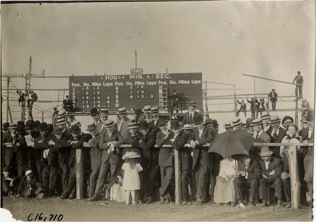 Favorite this☆ Spectators standing in front of scoreboard Description: View of spectators standing in front of scoreboard during track meet. Handwritten on back: "Sporting events--Track and field, 1909." Details Resource ID: na018369 Subject: Sports spectators Signs and signboards Track and field--Tournaments Photographic prints Date Issued: 1909 Format: 1 photographic print ; 4.75 x 6.75 in. Member of: National Automotive History Collection Lazarnick Collection Filing Location: Sporting events--Track and field, 1909 #16 Negative Number: Negative #C16,710 Rights: Physical rights are retained by DPL. Copyright is retained in accordance with U.S. copyright laws.