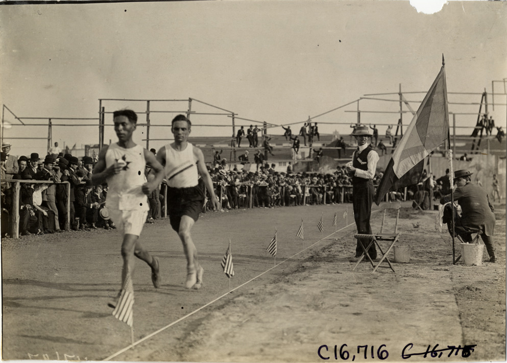 Favorite this☆ Runners competing in race Description: View of runners competing in race at track meet. Officials and spectators watch from sidelines. Handwritten on back: "Sporting events--Track and field, 1909." Details Resource ID: na018375 Subject: Runners (Sports) Running races Photographic prints Date Issued: 1909 Format: 1 photographic print ; 4.75 x 6.75 in. Member of: National Automotive History Collection Lazarnick Collection Filing Location: Sporting events--Track and field, 1909 #16 Negative Number: Negative #C16,716 Rights: Physical rights are retained by DPL. Copyright is retained in accordance with U.S. copyright laws.