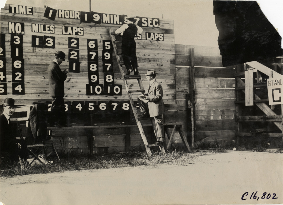 Favorite this☆ Men with ladder working on scoreboard at track meet Description: View of men with ladder working on scoreboard at track meet. Handwritten on back: "Sporting events--Track and field, 1909." Details Resource ID: na018461 Subject: Signs and signboards Ladders Track and field--Tournaments Photographic prints Date Issued: 1909 Format: 1 photographic print ; 4.75 x 6.5 in. Member of: National Automotive History Collection Lazarnick Collection Filing Location: Sporting events--Track and field, 1909 #20 Negative Number: Negative #C16,802 Rights: Physical rights are retained by DPL. Copyright is retained in accordance with U.S. copyright laws.