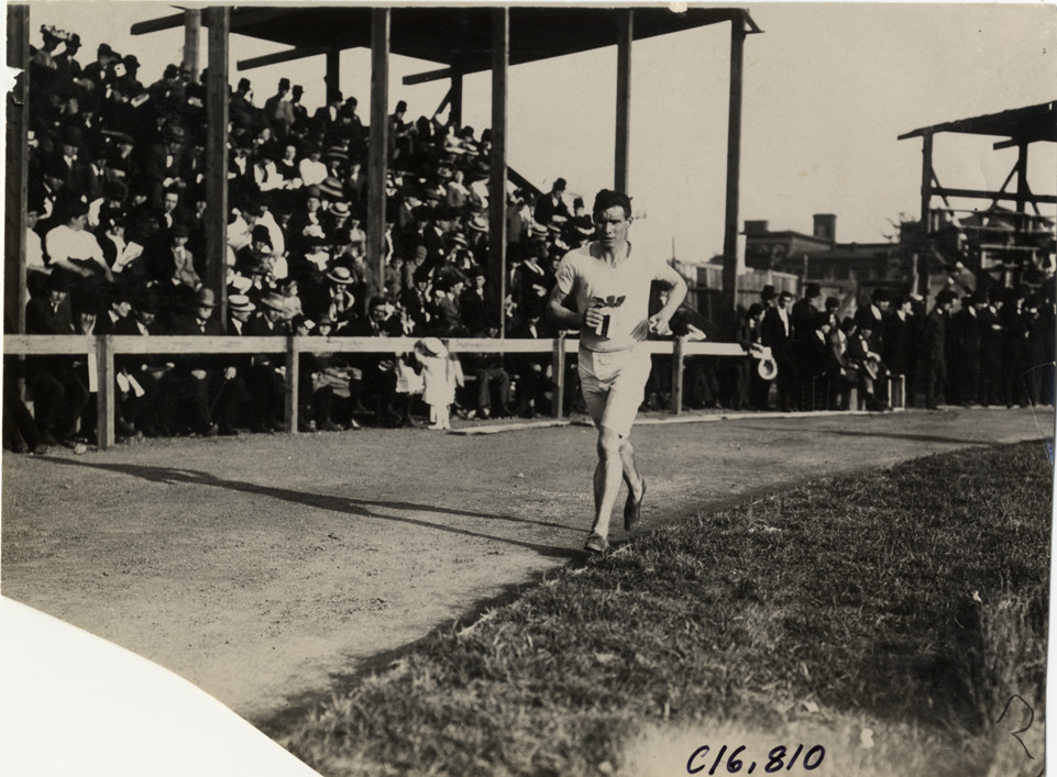Favorite this☆ Runner James Crowley competing in marathon race Description: View of runner James Crowley competing in marathon race. Spectators in grandstand in background. Handwritten on back: "Sporting events--Track and field, 1909." Details Resource ID: na018469 Subject: Runners (Sports) Sports spectators Marathon running--Competitions Photographic prints Date Issued: 1909 Format: 1 photographic print ; 4.75 x 6.5 in. Member of: National Automotive History Collection Lazarnick Collection Filing Location: Sporting events--Track and field, 1909 #20 Negative Number: Negative #C16,810 Rights: Physical rights are retained by DPL. Copyright is retained in accordance with U.S. copyright laws.