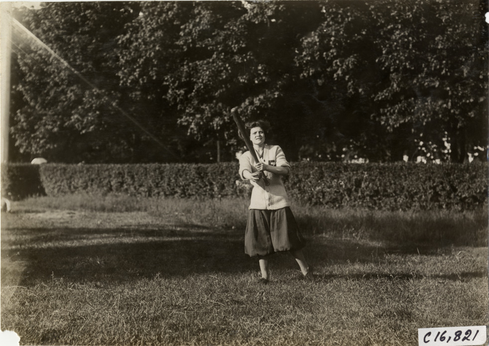 Favorite this☆ Woman baseball player holding a baseball bat Description: View of woman baseball player holding a baseball bat. Handwritten on back: "Sporting events--Track and field, 1909." Details Resource ID: na018480 Subject: Women baseball players Baseball bats Photographic prints Date Issued: 1909 Format: 1 photographic print ; 4.75 x 6.5 in. Member of: National Automotive History Collection Lazarnick Collection Filing Location: Sporting events--Track and field, 1909 #20 Negative Number: Negative #C16,821 Rights: Physical rights are retained by DPL. Copyright is retained in accordance with U.S. copyright laws.
