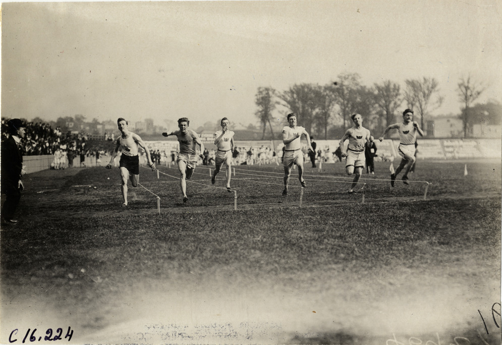 Runners competing in race at track and field event during the 1909 New Jersey Marathon