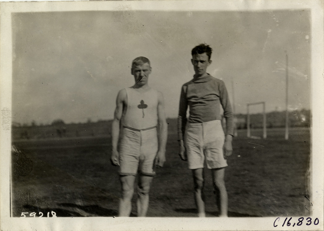 Favorite this☆ Runners Description: View of two runners posing on field at track and field event. Stamped on back: "Spooner & Wells, Inc., photographers, telephones 3472-3473 Columbus, 1931 Broadway, New York." Handwritten on back: "Sporting events--Track and field, 1910." Details Resource ID: na018549 Creator: Spooner & Wells Subject: Runners (Sports) Track and field--Tournaments Photographers--New York (State)--New York Photographic prints Date Issued: 1910 Format: 1 photographic print ; 5 x 7 in. Member of: National Automotive History Collection Lazarnick Collection Filing Location: Sporting events--Track and field, 1910 #1 Negative Number: Negative #C16,830 Rights: Physical rights are retained by DPL. Copyright is retained in accordance with U.S. copyright laws.